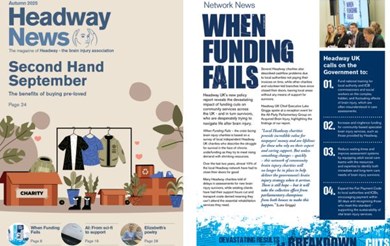 Headway - the brain injury association is registered with the Charity Commission for England and Wales (Charity no. 1025852) and the Office of the Scottish Regulator (Charity no. SC 039992). Headway is a company limited by guarantee, registered in England no. 2346893.